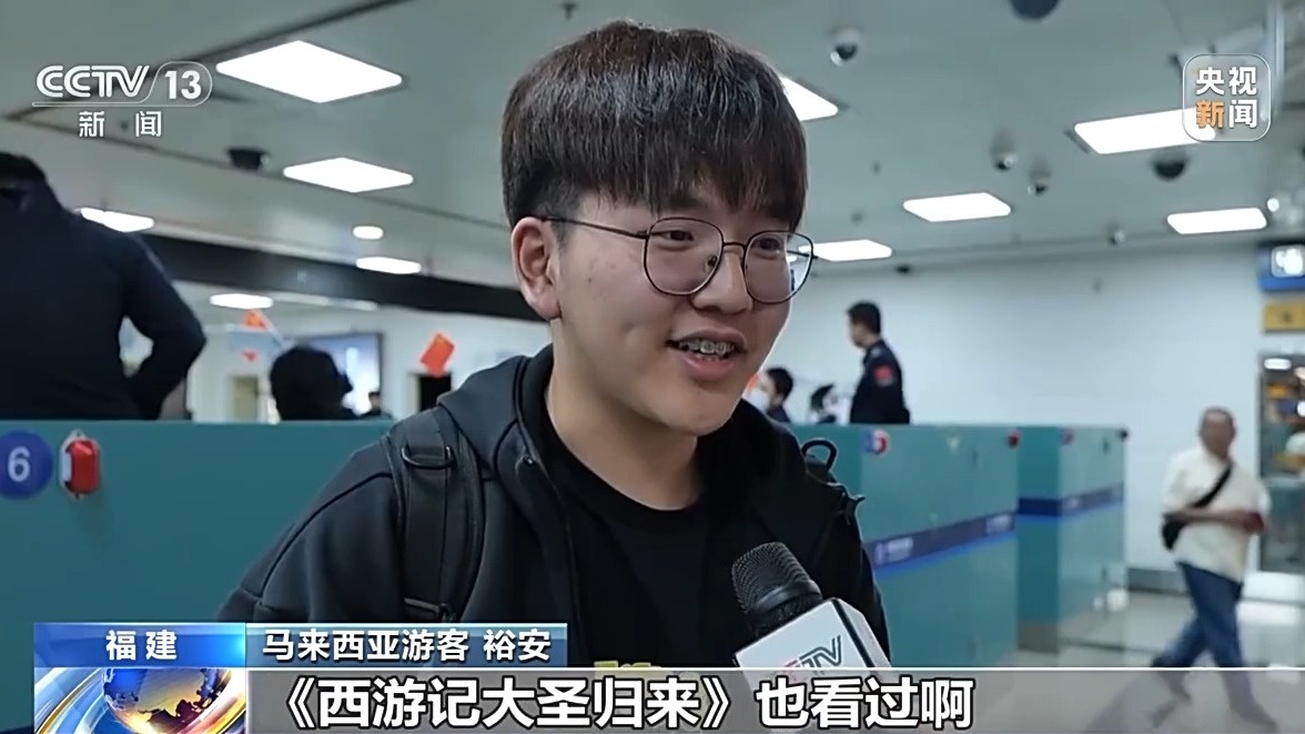 馬來西亞游客 裕安:第一集的《哪吒》我有看過,《西游記大圣歸來》也看過啊,就很喜歡它們的特效之類,《黑神話悟空》也打完了。(總臺央視記者 劉小月 廣東站 福建站)