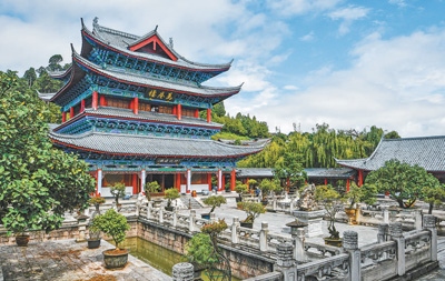 “一座土司府,半部民族史”。木府萬卷樓前的這10個字,將邊地古城各民族交往交流交融的故事娓娓道來。獅子山拱衛(wèi)、護(hù)城河縈繞,木府的選址與布局十分講究。作為麗江木氏土司府的衙署,木府始建于明代,后來歷經(jīng)多次擴(kuò)建和修繕,形成了現(xiàn)有的建筑群布局,議事廳、萬卷樓、護(hù)法殿等沿中軸線依次排開。歷經(jīng)400多年風(fēng)雨的木府,作為麗江古城中的重要文化地標(biāo),聆聽著各民族百川匯流向前的歷史回響。