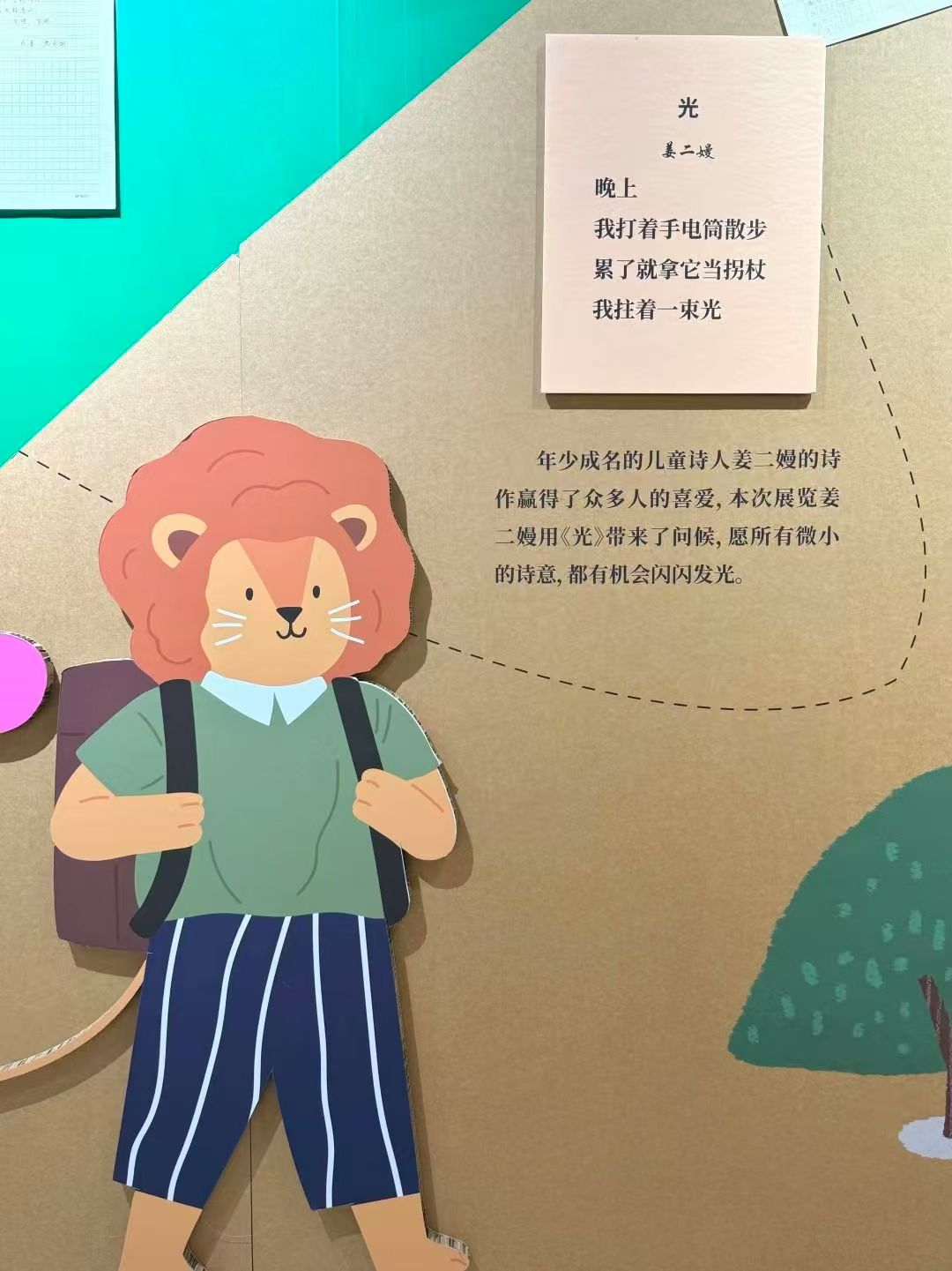 本次展覽匯集全國(guó)各地少年兒童創(chuàng)作的百余首詩(shī)歌,其中包括經(jīng)嚴(yán)格評(píng)審產(chǎn)生的35篇優(yōu)秀作品。展覽分為“家在水草豐茂的地方”“為萬(wàn)物輕聲命名”“原來(lái)這就是長(zhǎng)大呀”“未來(lái)花正開”四個(gè)單元,從描繪勒勒車轍蜿蜒的稚趣短句,到追問(wèn)星星為何眨眼的天真遐想,再到幻想成為箭矢破浪飛馳的斑斕夢(mèng)境,童心與詩(shī)意在展覽中浪漫相遇,開啟了一場(chǎng)屬于孩子們的詩(shī)歌盛會(huì)。