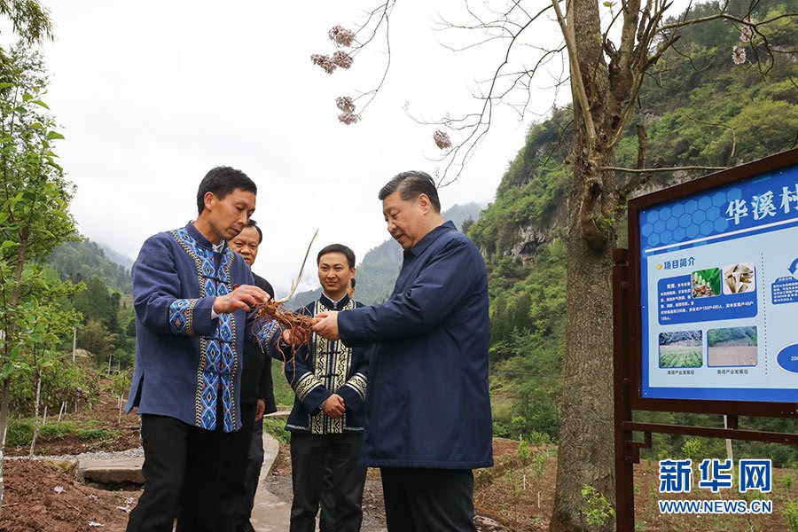 走訪一家脫貧戶(hù),他沿著鄉(xiāng)間小路步行察看自然環(huán)境、村容村貌,了解該村通過(guò)種植中藥材黃精等特色經(jīng)濟(jì)作物帶動(dòng)村民脫貧的情況。