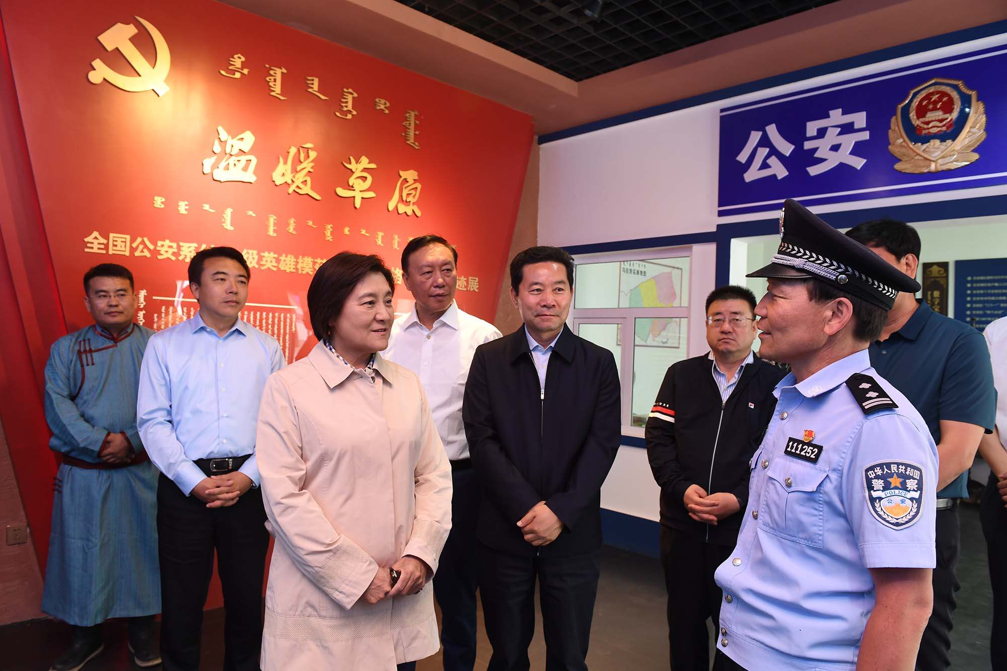 烏拉特后旗公安局潮格溫都爾鎮(zhèn)派出所民警寶音德力格爾被授予“全國(guó)公安系統(tǒng)一級(jí)英雄模范”榮譽(yù)稱(chēng)號(hào)。布小林走進(jìn)寶音德力格爾事跡館參觀(guān),與寶音德力格爾親切交談,對(duì)他舍小家顧大家、為人民群眾無(wú)私奉獻(xiàn)的精神給予充分肯定。