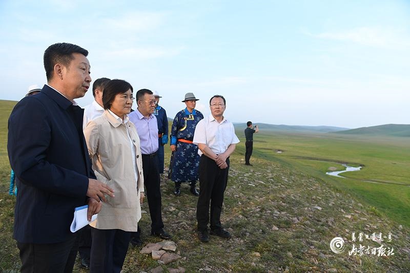 錫林郭勒盟是我國(guó)草地類型和植被種類最齊全的草原地區(qū)。在東烏珠穆沁旗,布小林實(shí)地考察了退化草原生態(tài)修復(fù)試點(diǎn)項(xiàng)目,深入了解項(xiàng)目規(guī)劃、治理模式以及取得的成效。在烏拉蓋管理區(qū),她走進(jìn)李燕家庭牧場(chǎng)、哈拉蓋圖國(guó)營(yíng)農(nóng)牧場(chǎng),調(diào)研草原生態(tài)保護(hù)、文化旅游業(yè)發(fā)展以及牧民增收等方面的情況。布小林強(qiáng)調(diào),要牢固樹(shù)立綠水青山就是金山銀山的理念,進(jìn)一步加大草原生態(tài)系統(tǒng)的保護(hù)和修復(fù)力度,加快轉(zhuǎn)變畜牧業(yè)發(fā)展方式,努力實(shí)現(xiàn)保護(hù)草原生態(tài)和促進(jìn)牧民增收雙贏。