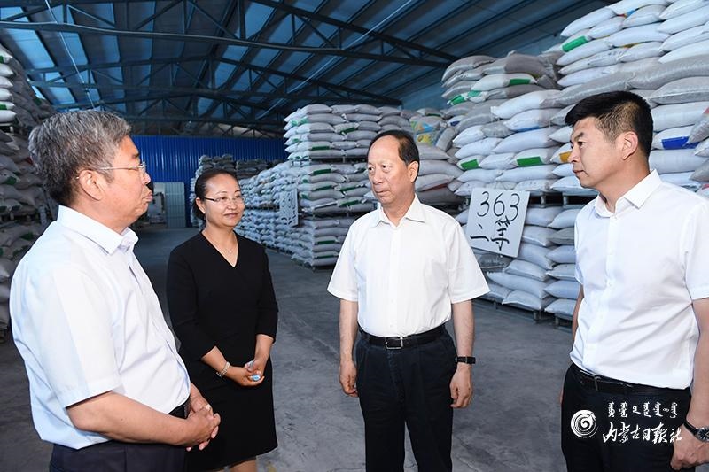 7月14日,自治區(qū)黨委書記、人大常委會(huì)主任石泰峰深入烏蘭察布市四子王旗景欣農(nóng)業(yè)有限公司,了解生產(chǎn)經(jīng)營(yíng)及帶貧增收情況。內(nèi)蒙古日?qǐng)?bào)社融媒體記者 袁永紅 攝