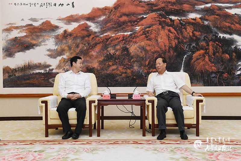 8月27日下午,自治區(qū)黨委書記、人大常委會主任石泰峰在呼和浩特會見中國移動通信集團(tuán)有限公司董事長楊杰。內(nèi)蒙古日報(bào)社融媒體記者 袁永紅 攝