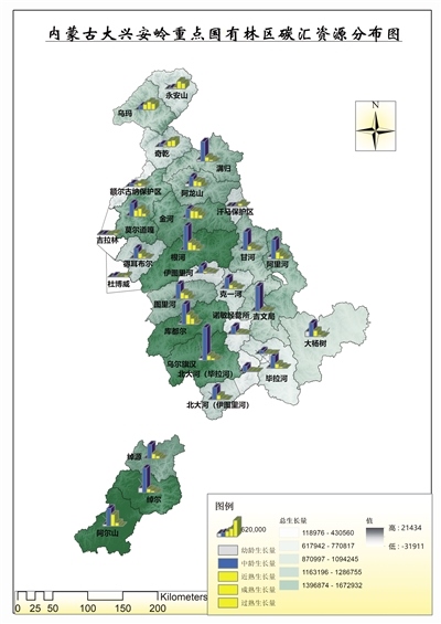 內蒙古大興安嶺重點國有林區(qū)碳匯資源分布圖。