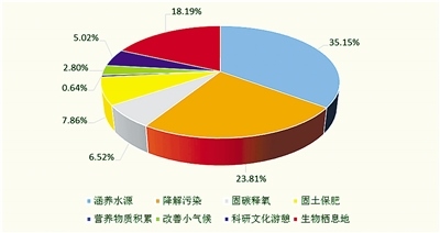 內蒙古森工集團2018年森林生態(tài)系統(tǒng)服務功能價值比例。