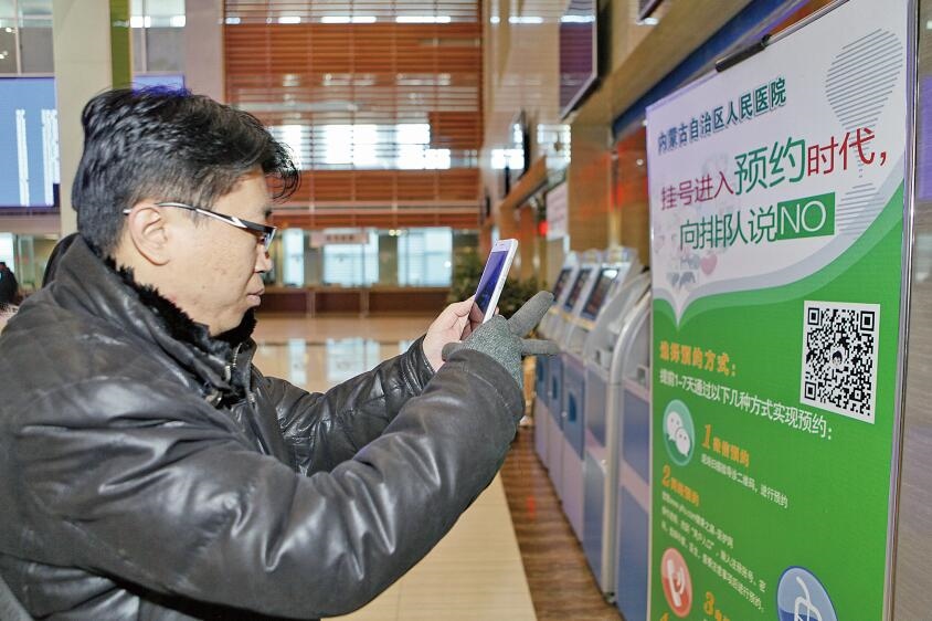 2016年1月,在內(nèi)蒙古自治區(qū)人民醫(yī)院 ,掛號(hào)可以通過(guò)掃描二維碼進(jìn)行預(yù)約,極大的方便了患者就醫(yī)。