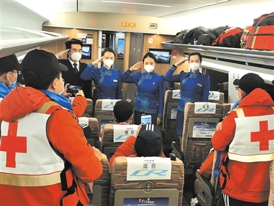 作為連通全國的運輸動脈,在完成常規(guī)運輸任務(wù)的基礎(chǔ)上,高鐵列車還承擔起了運送醫(yī)務(wù)人員、醫(yī)療用品和保障物資的特別任務(wù)。內(nèi)蒙古援鄂醫(yī)療隊員兩批次乘坐G2438次列車從北京中轉(zhuǎn)赴武漢;五批次乘坐“草原動車”由鄂爾多斯回到呼和浩特?!八陀⑿鄢稣?,接英雄回家”,七次運輸任務(wù),高鐵車隊以最高禮遇和精心的服務(wù),贏得醫(yī)療隊員們的紛紛好評?!爸x謝你們,出發(fā)時為我們送行,歸來時為我們唱起凱旋之歌?!贬t(yī)療隊隊員李紅娟緊緊握住列車長張雨的手說。