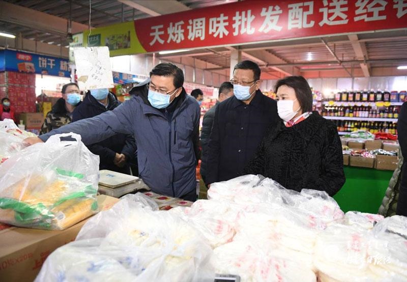 布小林來到呼和浩特市新城區(qū)福海興農(nóng)貿(mào)市場,檢查冷鏈物流疫情防控措施、市場消毒、體溫檢測和群眾戴口罩等情況,察看市場環(huán)境和經(jīng)營攤位衛(wèi)生狀況,詳細了解糧油、蔬菜、肉類、食品等的供貨渠道、日常儲備、商品價格和食品安全檢測情況。對保持干凈整潔的市場環(huán)境、營造讓群眾放心滿意的消費環(huán)境和嚴(yán)格落實疫情防控措施提出要求。臨近中午,她又來到維多利喜悅匯超市,走進銷售區(qū)域一一查看,對相關(guān)情況作了深入了解。