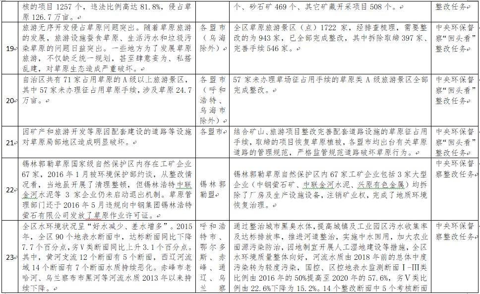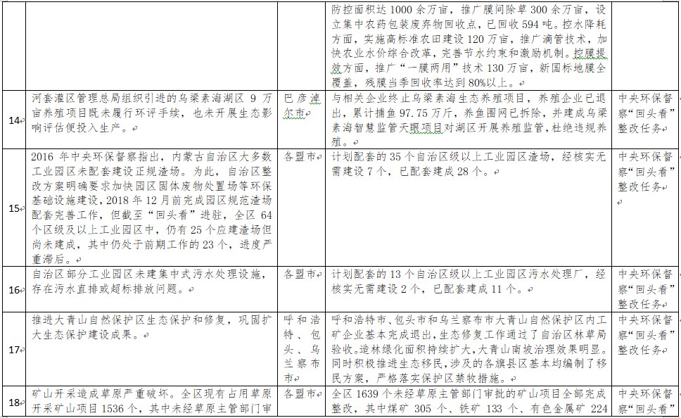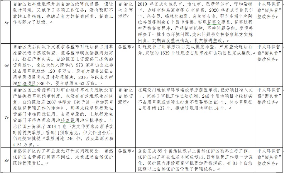中央環(huán)境保護督察以來,自治區(qū)各級黨委政府及相關(guān)部門高度重視反饋意見整改工作,貫徹落實習近平生態(tài)文明思想的自覺性和主動性顯著增強,采取強有力措施積極推動整改工作,整改工作取得階段性成果。近期部分整改任務已通過自治區(qū)相關(guān)委辦廳局驗收,現(xiàn)予以公示,公示期2021年2月5日至2月9日,未提出異議的整改任務給予銷號(聯(lián)系電話:0471-4632171)。
