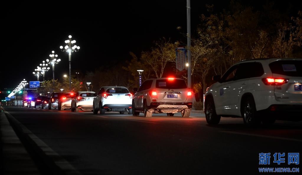 10月28日,即將離開額濟納旗的滯留自駕游客車隊。新華社記者 王雪冰 攝