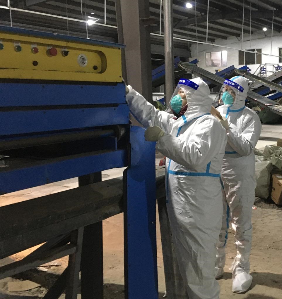 快遞傳送帶的工位、員工宿舍的枕頭、快遞車的把手……工作人員對(duì)可能存在病毒樣本的位置一個(gè)也不放過。