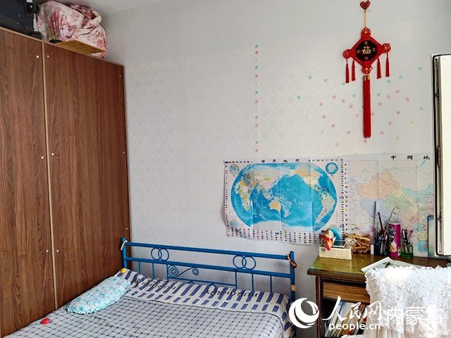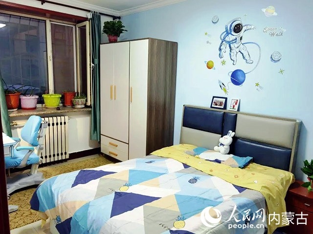 在對原有住房進行規(guī)劃、設計后,施工隊開始裝修,并配備必要的家具、臥具和學習生活用品。歷時半個多月,一間以藍色為主色調(diào)的小屋建成了?,F(xiàn)在,屬于浩博的那一半臥室,泛黃的臥室墻壁被粉刷成淡藍色,換了新的小床和衣柜,新添置的書桌上擺滿了課外書,看起來整潔又溫馨。