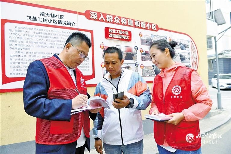 呼和浩特市新城區(qū)西街街道星火巷社區(qū)開(kāi)展“我為群眾辦實(shí)事”實(shí)踐活動(dòng),解決群眾“急難愁盼”問(wèn)題。內(nèi)蒙古日?qǐng)?bào)社融媒體記者 孟和朝魯 攝