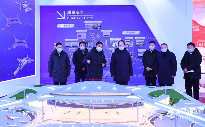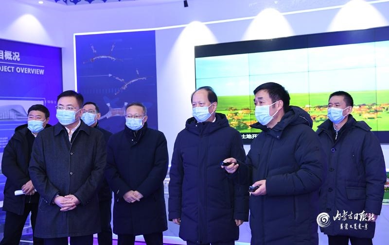 1月18日下午,自治區(qū)黨委書記、人大常委會主任石泰峰在呼和浩特新機(jī)場智慧展廳,聽取新機(jī)場主體建設(shè)情況介紹。內(nèi)蒙古日報(bào)社融媒體記者 袁永紅 攝