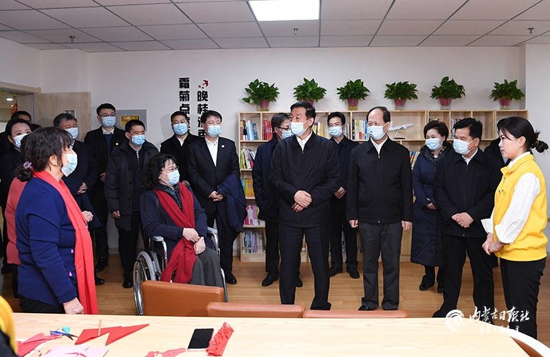 1月22日上午,國務委員王勇在民政部黨組書記、部長李紀恒,中國殘聯(lián)主席張海迪,自治區(qū)黨委書記、人大常委會主任石泰峰的陪同下,來到呼和浩特市賽罕區(qū)人民路街道仕奇居家和社區(qū)養(yǎng)老服務綜合體,走訪了解養(yǎng)老服務工作。內(nèi)蒙古日報社融媒體記者袁永紅攝