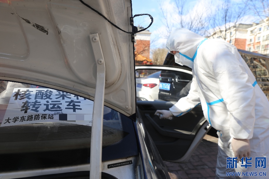 到達核酸采樣點后,籍東斌在工作人員取樣本間隙對車輛進行消殺。核酸樣本轉運存在著一定風險性,籍東斌說,只要按要求做好防護,按規(guī)定完成工作,就沒什么問題。新華網(wǎng)發(fā) 李倩攝