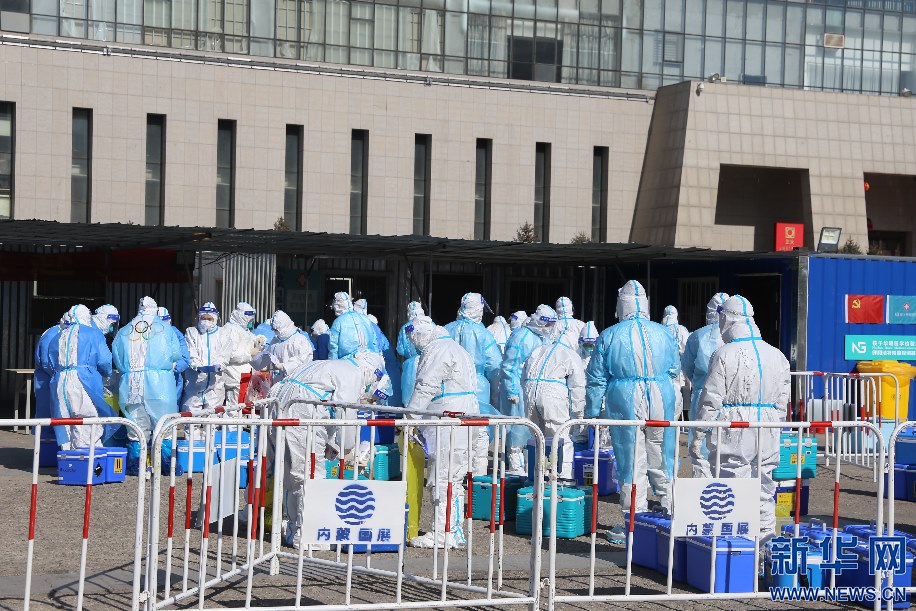 2月15日,新冠肺炎疫情突襲呼和浩特,籍東斌和同事們響應號召成為志愿者,負責核酸檢測樣本轉運工作。新華網(wǎng)發(fā) 李倩攝