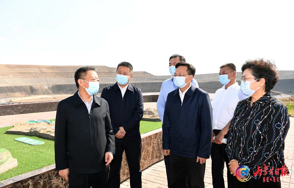 5月24日,自治區(qū)黨委書記孫紹騁深入蘇海圖小鐵帽子采空區(qū)災害綜合治理項目現(xiàn)場,認真聽取相關情況匯報。內蒙古日報社融媒體記者袁永紅攝