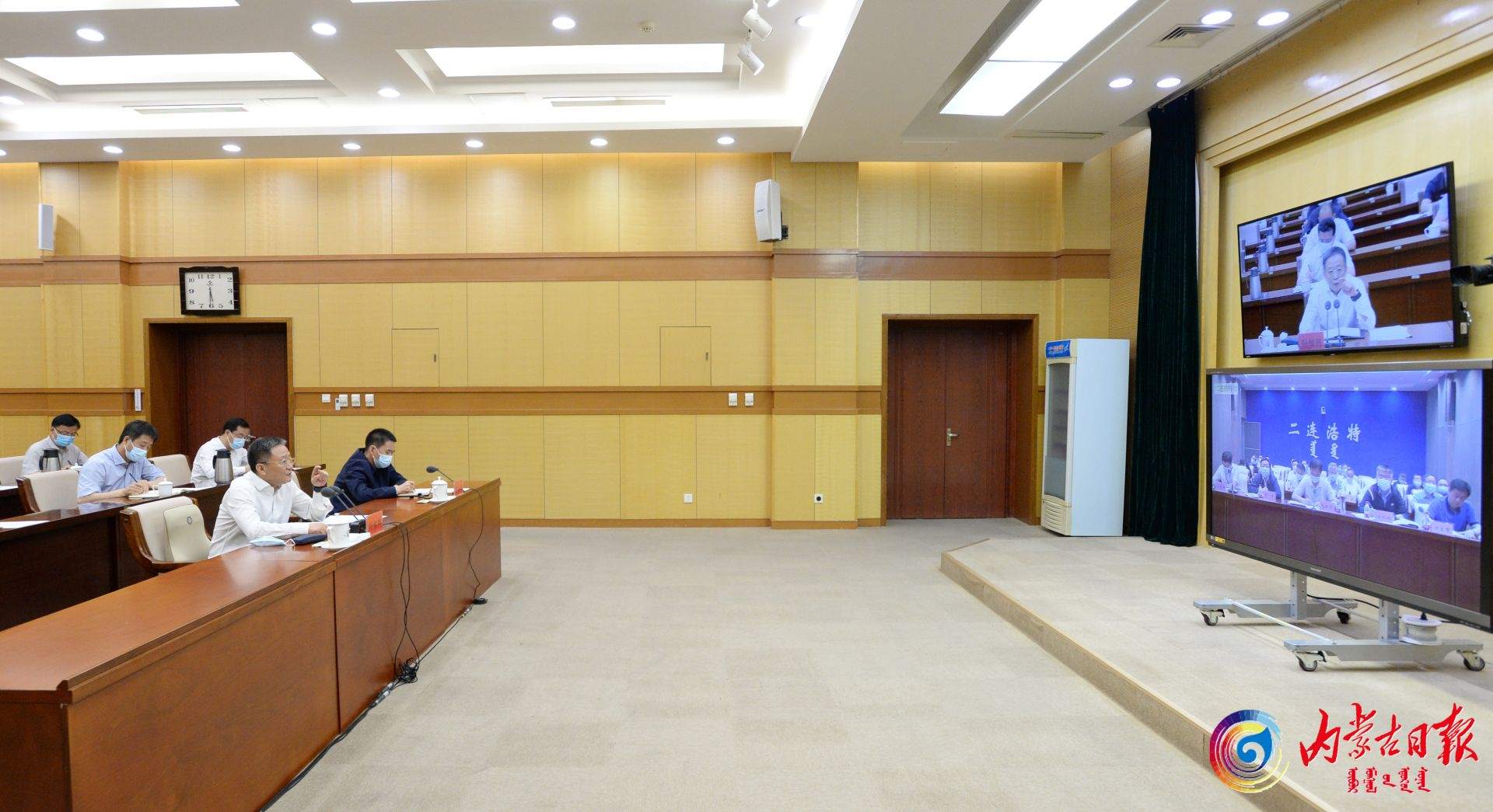 6月3日下午,自治區(qū)黨委書記孫紹騁主持召開二連浩特市新冠肺炎疫情應對處置工作視頻調度會并講話。記者袁永紅攝