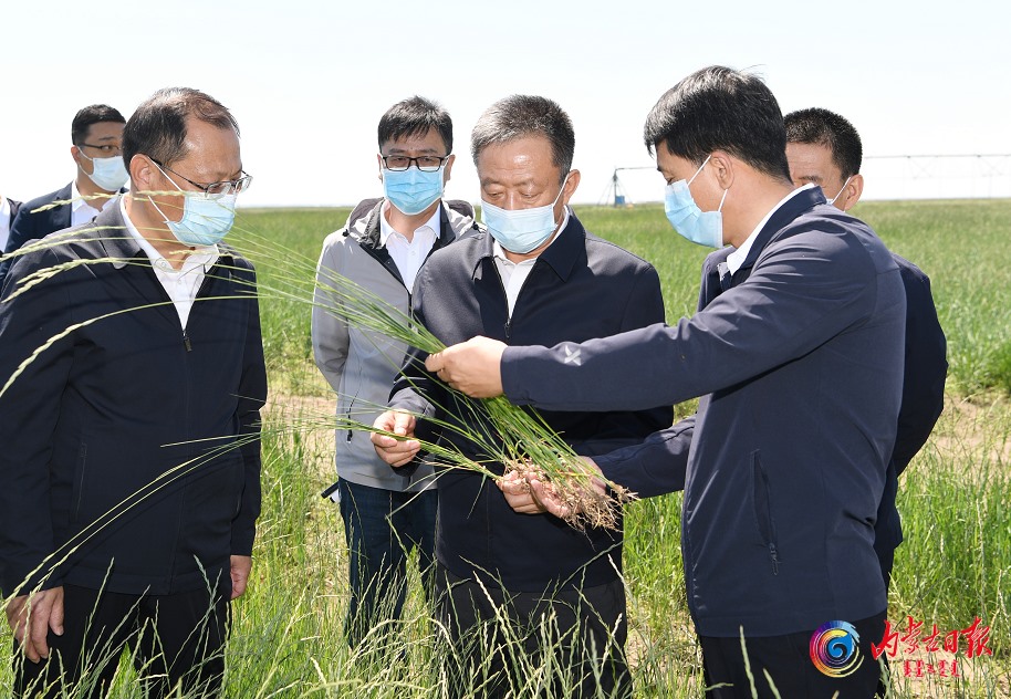 6月18日,自治區(qū)黨委書記孫紹騁在呼倫貝爾市陳巴爾虎旗羊草擴繁基地調研。內蒙古日報社融媒體記者 袁永紅 攝