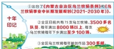 1957年,內(nèi)蒙古第一支烏蘭牧騎在錫林郭勒盟蘇尼特右旗誕生。60多年來,烏蘭牧騎事業(yè)不斷發(fā)展壯大,成為內(nèi)蒙古一張亮麗的文化名片。2017年11月21日,習(xí)近平總書記給蘇尼特右旗烏蘭牧騎的隊(duì)員們回信,勉勵他們以黨的十九大精神為指引,大力弘揚(yáng)烏蘭牧騎的優(yōu)良傳統(tǒng),扎根生活沃土,服務(wù)牧民群眾,推動文藝創(chuàng)新,努力創(chuàng)作更多接地氣、傳得開、留得下的優(yōu)秀作品,永遠(yuǎn)做草原上的“紅色文藝輕騎兵”??倳浀囊笠髧谕校钊珔^(qū)3500多名烏蘭牧騎隊(duì)員牢記使命、根植沃土,永遠(yuǎn)為人民服務(wù),永遠(yuǎn)為人民放歌。