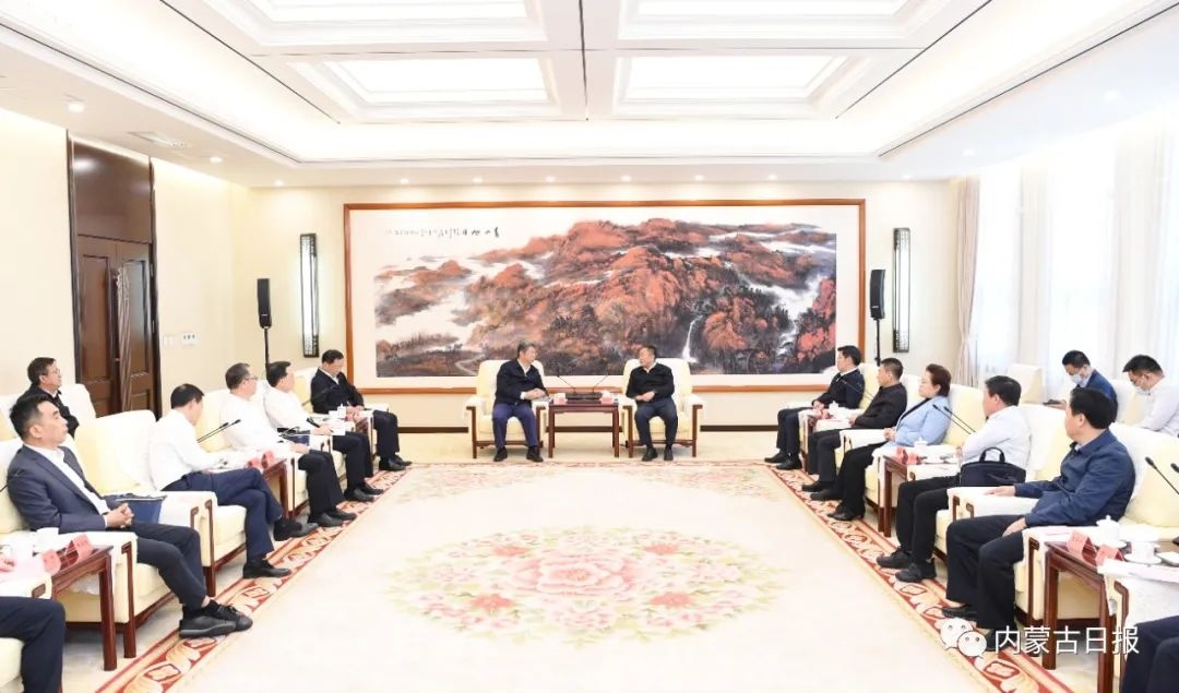 9月27日中午,自治區(qū)黨委書(shū)記孫紹騁在呼和浩特會(huì)見(jiàn)中國(guó)石油化工集團(tuán)董事長(zhǎng)、黨組書(shū)記馬永生一行。內(nèi)蒙古日?qǐng)?bào)社融媒體記者袁永紅攝