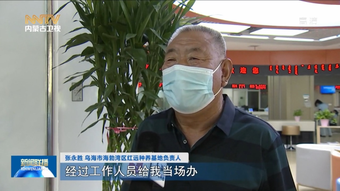 張永勝 烏海市海勃灣區(qū)紅遠(yuǎn)種養(yǎng)基地負(fù)責(zé)人 我原來想的辦這個(gè)東西挺費(fèi)勁,經(jīng)過工作人員給我當(dāng)場辦,比我想象的還要快,我非常高興。
