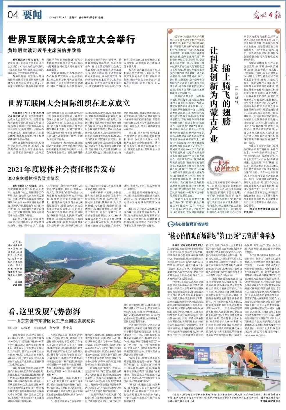7月13日出版的《光明日報》4版刊發(fā)內(nèi)蒙古自治區(qū)黨委書記孫紹騁署名文章《讓科技創(chuàng)新為內(nèi)蒙古產(chǎn)業(yè)插上騰飛的翅膀》。報道全文如下: