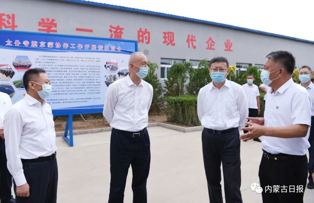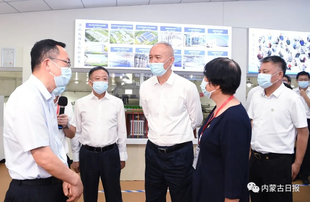 7月22日,北京市黨政代表團(tuán)在錫林郭勒盟太仆寺旗考察調(diào)研。圖為北京市黨政代表團(tuán)在內(nèi)蒙古科泰隆達(dá)環(huán)??萍加邢薰荆私馄髽I(yè)生產(chǎn)經(jīng)營情況。記者袁永紅攝