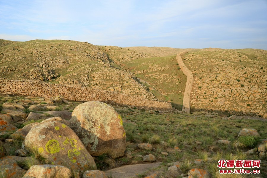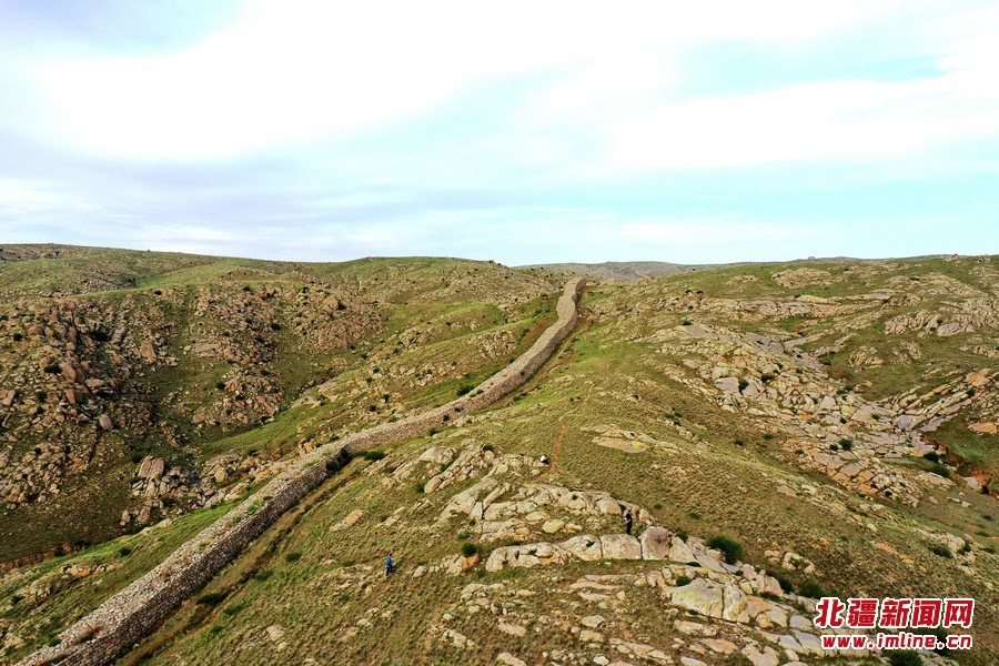據(jù)考證,秦長城東起呼和浩特市新城區(qū)坡根底村北部的大青山南麓,沿陰山山脈西行,經(jīng)武川縣出大青山,穿越固陽縣中部的色爾騰山、烏拉特前旗的查石太山和烏拉特中旗的罕烏拉山,西部端點在小狼山西麓石蘭計山口。其中,土筑長城墻體于地表呈明顯的土壟狀,石筑長城遺跡保存較好,基寬3—5米,墻體外壁高5米左右,沿線建筑有烽燧、障城及部都尉城。沿山而建,氣勢磅礴,蔚為壯觀。固陽縣境內全長近96公里,是中國早期長城的代表性段落;1987年被列入世界文化遺產(chǎn)。2012—2018年,經(jīng)國家文物局批準,包頭市文物局組織實施了固陽秦長城天盛成段的保護工程,修繕長城墻體2148米、烽燧1座。