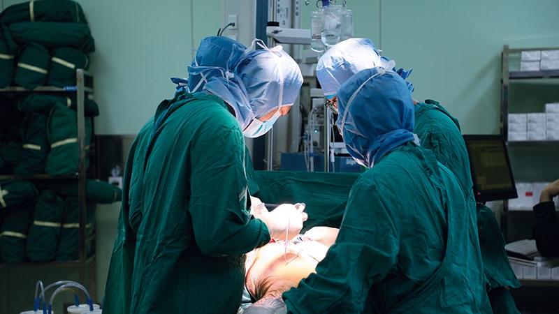 內(nèi)蒙古醫(yī)科大學(xué)第二附屬醫(yī)院的醫(yī)生利用集中帶量采購(gòu)的人工關(guān)節(jié)進(jìn)行手術(shù)(2022年4月攝) 內(nèi)蒙古醫(yī)科大學(xué)第二附屬醫(yī)院供圖