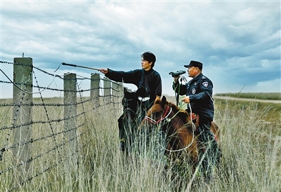 護(hù)邊員圖門和兒子觀察邊境周邊情況。呼倫貝爾市新巴爾虎右旗貝爾蘇木退伍老兵圖門一家三代堅守祖國邊疆,被稱為北疆“紅色堡壘戶”。記者馬建荃攝