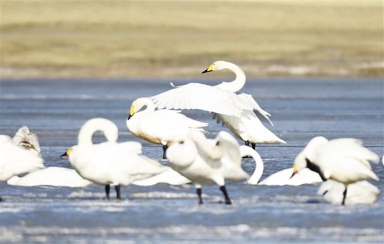 晶晶忍不住感嘆:“我和盈盈每次南飛或北遷,都要在沉湖‘打卡’,這個城市濕地已變成了小天鵝的‘會客廳’。前些年,這里可不好玩,用人類的話說,它‘曾經(jīng)滿目瘡痍,如今萬鳥翔集、水草豐美’?!?/p>
