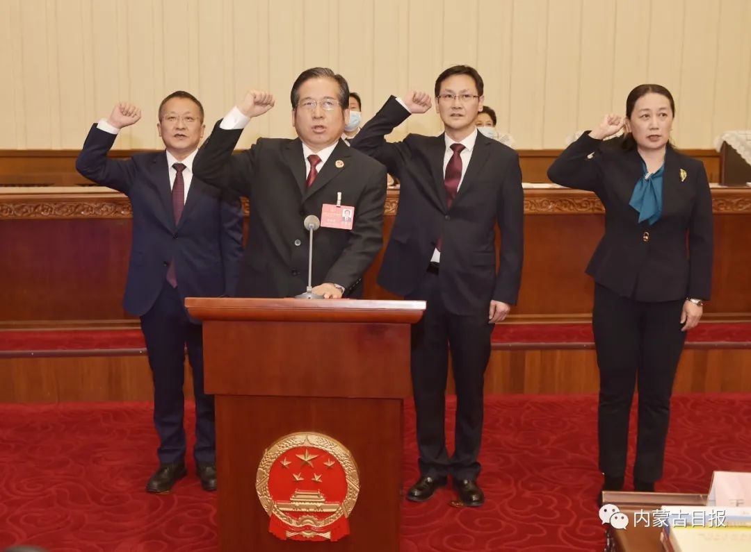 3月29日下午,李永君及新任職人員向憲法莊嚴(yán)宣誓。內(nèi)蒙古日報社融媒體記者 馬建荃 攝