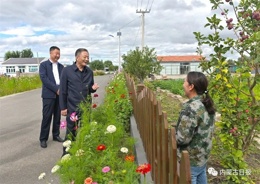 9月19日,自治區(qū)黨委書記孫紹騁來到科右中旗巴彥呼舒鎮(zhèn)西日道卜嘎查,與當(dāng)?shù)卮迕裆钊虢涣鳎私馑麄兊纳a(chǎn)生活情況。內(nèi)蒙古日報(bào)社融媒體記者 馬建荃 攝