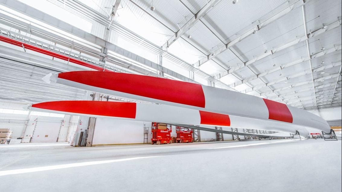 遠景北方(烏蘭察布)能源有限公司剛剛生產(chǎn)出的葉片。