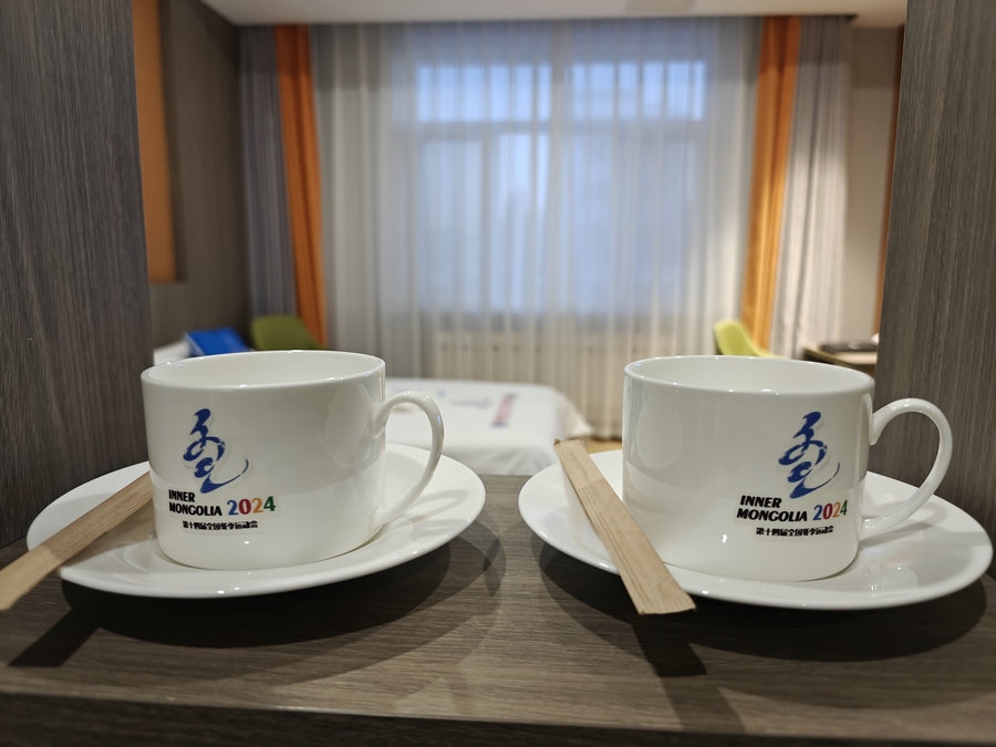 劉欣說:“‘十四冬’期間,酒店接待服務(wù)站將實(shí)行24小時值班制度,為入住酒店的賓客提供醫(yī)療衛(wèi)生、交通保障等服務(wù)。同時,我們還在一樓大堂設(shè)置了‘十四冬’文創(chuàng)商場,商場內(nèi)展示有‘十四冬’文創(chuàng)產(chǎn)品及皮畫、太陽花等呼倫貝爾的非遺產(chǎn)品?!?/p>