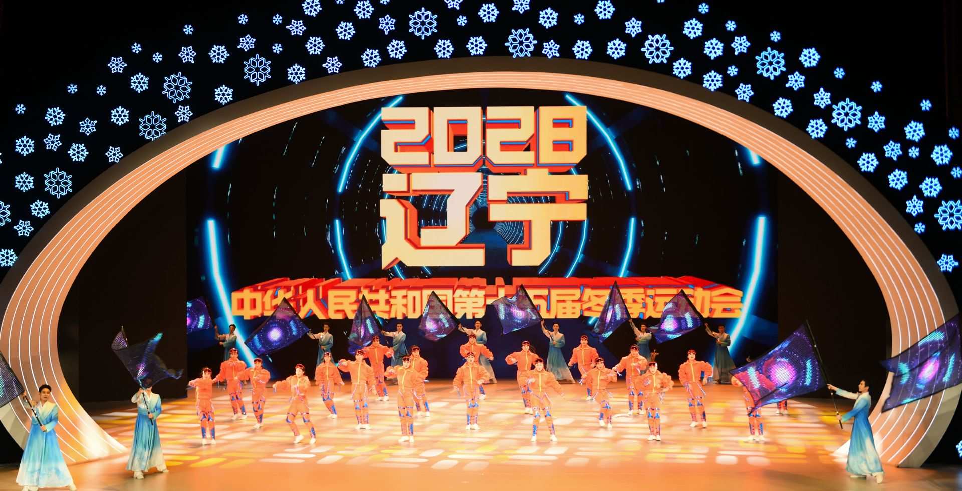 第十五屆全國冬季運(yùn)動(dòng)會(huì)承辦地遼寧省帶來精彩的文體展演《冬韻山海間》。 攝影:內(nèi)蒙古日?qǐng)?bào)·草原全媒記者 李超然 程英軍 孟和朝魯