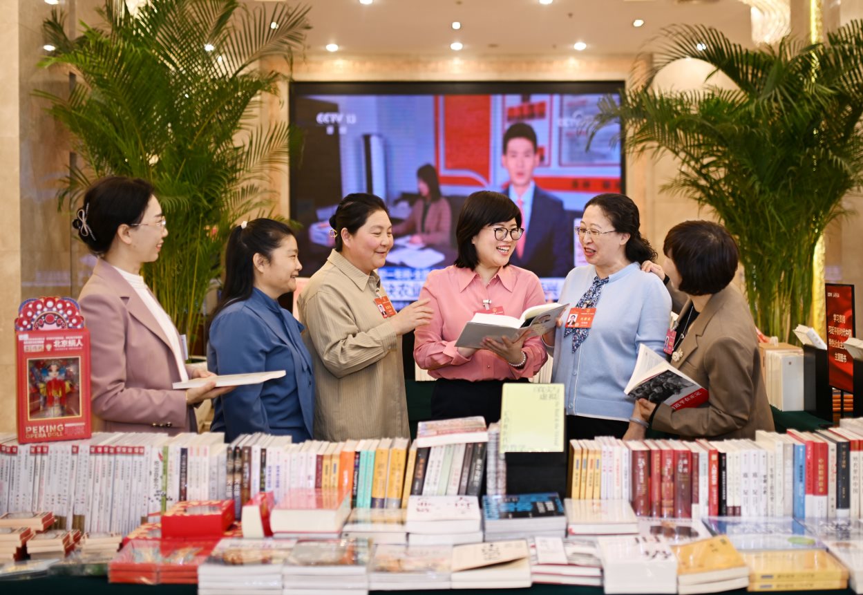 3月7日,參加十四屆全國人大二次會議的內(nèi)蒙古代表團的女代表們在會議間隙來到駐地書吧,選購自己喜歡的書籍。大會開幕以來,她們圍繞我區(qū)經(jīng)濟建設、科技創(chuàng)新、鄉(xiāng)村振興等方面提建議、談感受,積極建言獻策,為奮力書寫中國式現(xiàn)代化內(nèi)蒙古新篇章貢獻力量。草原全媒記者馬建荃孟和朝魯攝