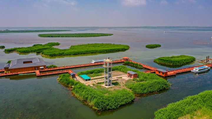 這是2023年6月19日拍攝的巴彥淖爾市烏拉特前旗境內(nèi)的烏梁素海(無人機(jī)照片)。新華社記者劉磊攝