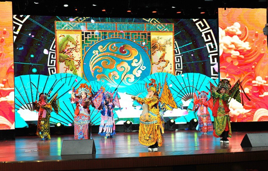 合唱《強國一代有我在》《祖國有我》、古典吉他合奏《天邊》、京劇《梨園薈萃》、朗誦《致敬祖國》、中國舞《碇步橋》、合唱《黨的孩子》《四季的問候》、《民族團(tuán)結(jié)英雄贊歌》、古箏齊奏《上春山》、拉丁現(xiàn)代舞《紅旗飄飄》、朗誦《你好,未來的我們》、師生舞蹈《外婆橋》、合唱《石榴籽一家親》等13個展演節(jié)目輪番上演。