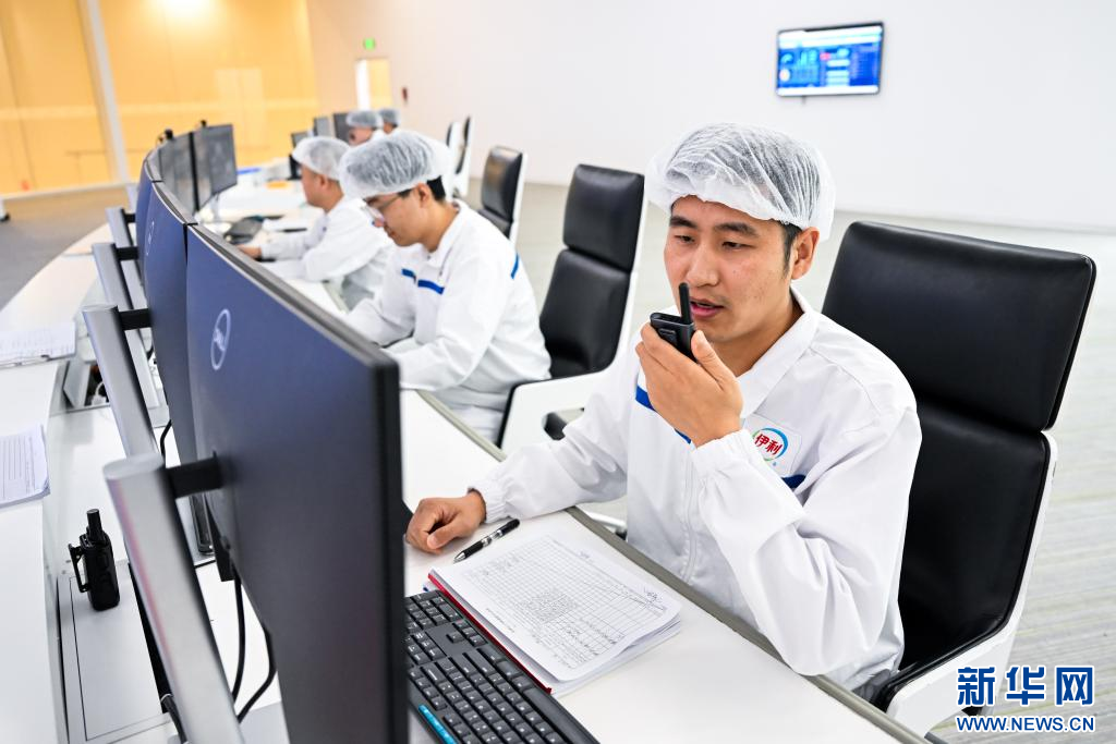 1月9日,在呼和浩特市伊利現(xiàn)代智慧健康谷液態(tài)奶全球智造標桿基地智控中心,工作人員在進行調(diào)度指揮。
