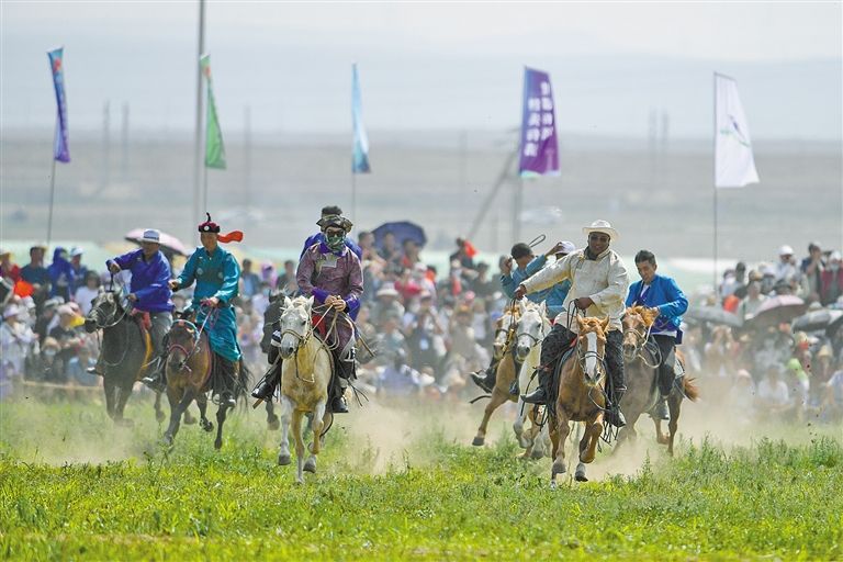 在錫林郭勒盟舉行的草原那達慕吸引了眾多游客和當?shù)厝罕姛崆閰⑴c。