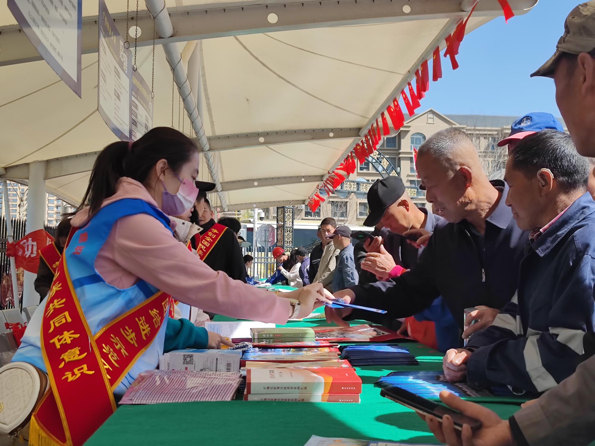 在烏海市海勃灣零工市場(chǎng),工作人員向求職者發(fā)放黨的民族理論政策宣傳冊(cè)。