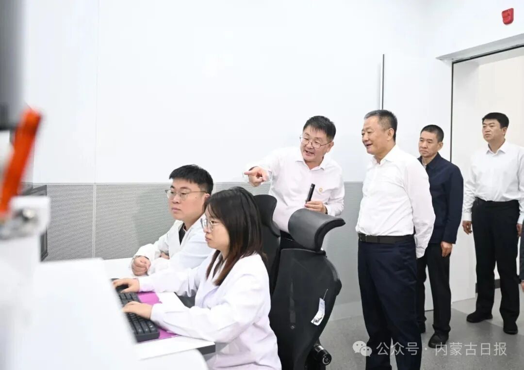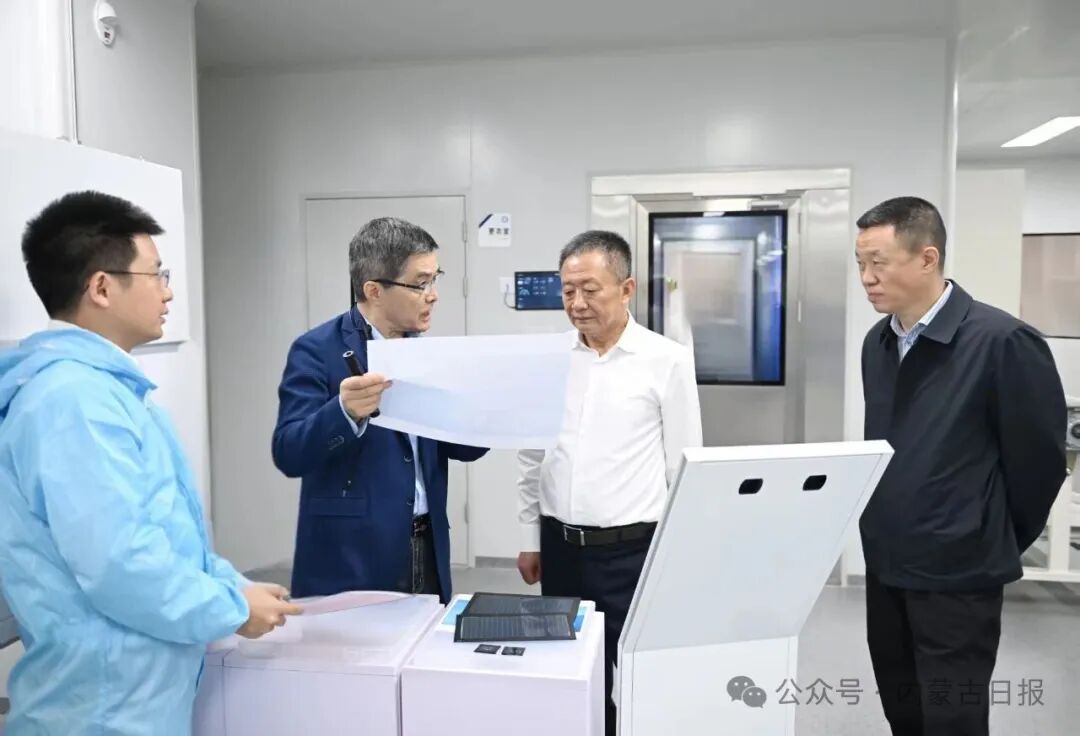 9月15日,自治區(qū)黨委書(shū)記孫紹騁走進(jìn)鄂爾多斯新能源研究院,認(rèn)真了解制氫儲(chǔ)氫有關(guān)技術(shù)創(chuàng)新、產(chǎn)品研發(fā)、場(chǎng)景應(yīng)用等情況。草原云·內(nèi)蒙古新聞網(wǎng)記者 馬建兵