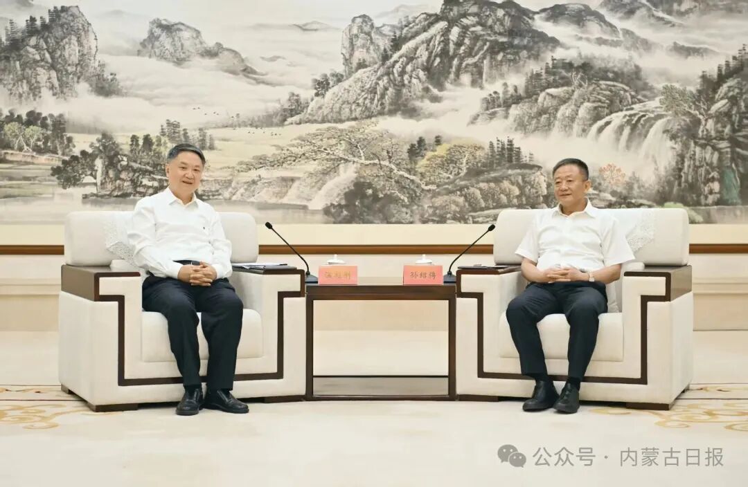 9月1日,自治區(qū)黨委書記孫紹騁在呼和浩特會見中國華能集團(tuán)有限公司黨組書記、董事長溫樞剛。草原云·內(nèi)蒙古新聞網(wǎng)記者 馬建兵 攝