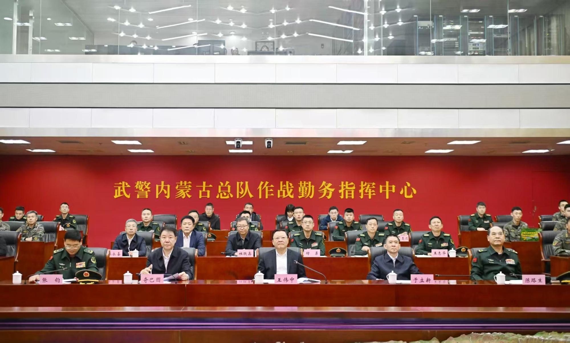 10月11日上午,自治區(qū)黨委書記王偉中來(lái)到武警內(nèi)蒙古總隊(duì),走進(jìn)作戰(zhàn)勤務(wù)指揮中心,仔細(xì)聽取部隊(duì)建設(shè)和指揮中心運(yùn)行情況介紹。草原云·內(nèi)蒙古新聞網(wǎng)記者 馬建兵 攝