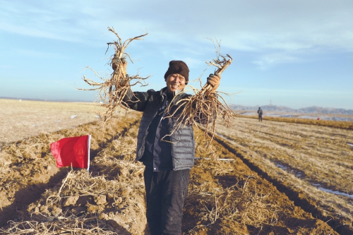 深秋時節(jié),內(nèi)蒙古自治區(qū)包頭市固陽縣迎來黃芪豐收季。金山鎮(zhèn)二社村潤植豐產(chǎn)農(nóng)民專業(yè)合作社的萬畝種植基地內(nèi)藥香彌漫,農(nóng)戶嫻熟地采挖著一根根飽滿的黃芪,臉上滿是豐收的喜悅?!拔覀兊狞S芪品質(zhì)好,在市場上很受歡迎?!焙献魃缲?fù)責(zé)人高潤才自豪地說。