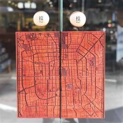 北京地圖主題書(shū)店的門把手上雕刻著北京城區(qū)地圖。地圖主題書(shū)店供圖